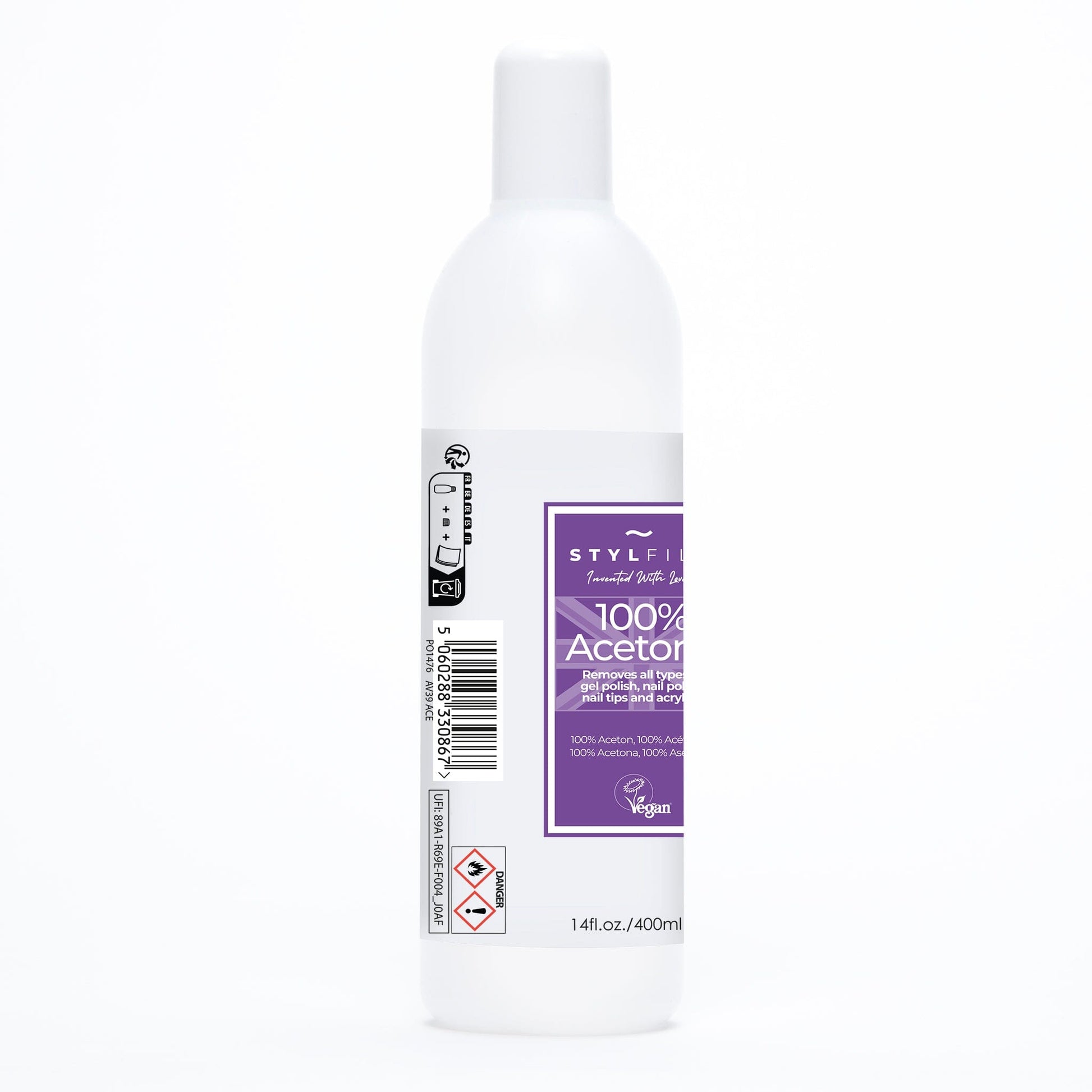 The STYLFILE Gel Polish Remover is made of 99% acetone, meaning it is a strong chemical solution and should avoid contact with the skin. Ensure removed polish is discarded immediately in a close-top bin and skin contact with the polish is avoided. If contact with skin is made, ensure hands are washed thoroughly with soap and water.